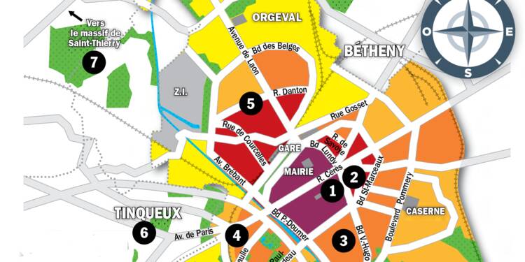 On peut facilement compter plus de 10 quartiers dans la ville de Reims : le centre ville, Saint-Remi, Courlancy, Châtillons, Wilson, Boulingrin, Croix du Sud, Orgeval, Centre Erlon, Hincmar…. La liste est encore longue ! Chaque quartier est marqué par des aspects soit plus résidentiel et calme avec des maisons ou des pavillons, soit plus urbain avec des immeubles et des appartements desservis par des rues pleines de magasins et de vie citadine.